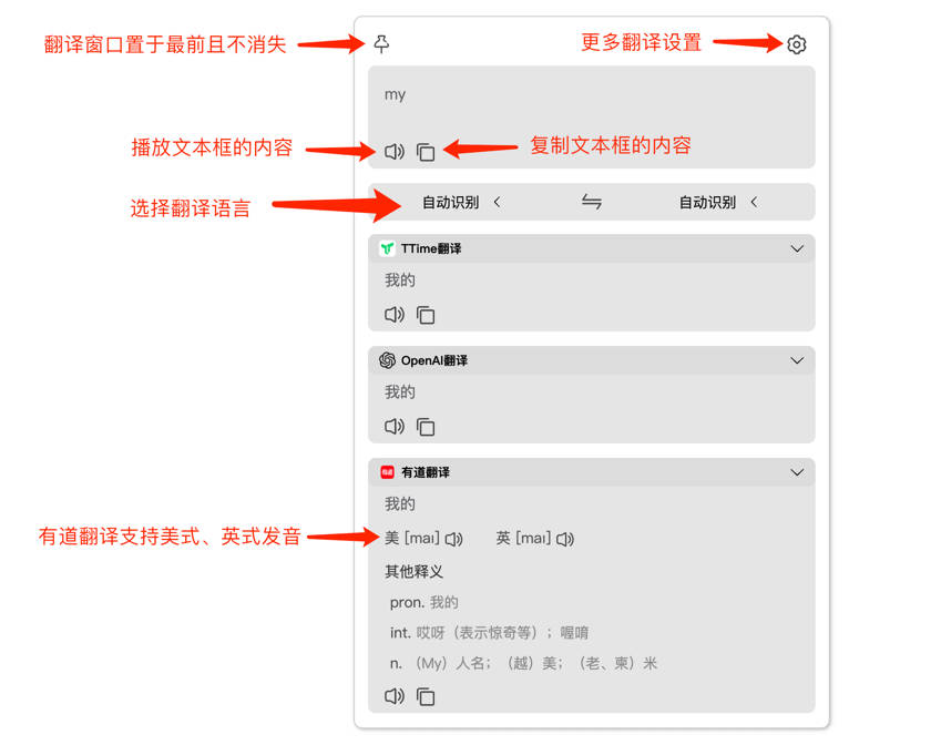 TTime是一款翻译软件,主要功能为输入翻译、截图翻译、划词翻译