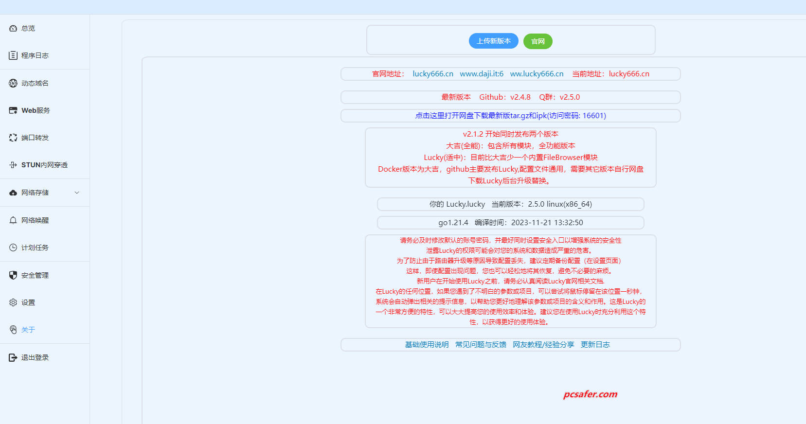 Lucky 的核心程序完全采用 Golang 实现,具有高效、稳定、跨平台等优点。其后台前端则采用 Vue3.2 技术进行开发,具有良好的用户体验和响应速度。此外,Lucky 的管理后台采用前后端分离的架构,第三方开发者也可以自由使用OpenToken轻松调用Lucky的各种功能接口。