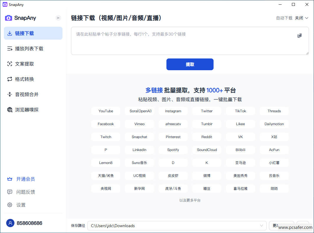 SnapAny 是一款免费无广告的多媒体下载工具,支持 Windows 与 Mac 系统,适配 10,000 + 国内外平台,无需注册,一键粘贴链接即可解析下载视频、音乐、图片,同时支持 8K/4K 超高清画质与无水印提取,满足内容创作、素材收集、离线缓存等场景需求。软件 100% 安全无捆绑,提供客户端与在线网页两种使用方式,操作零门槛,适合各类用户快速获取网络资源。